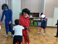 子どもたちは勇気いっぱい、「おには そと!」「ふくは うち!」と元気な声を響かせて豆まきを開始。みんなで力を合わせて、見事に鬼を退治しました!